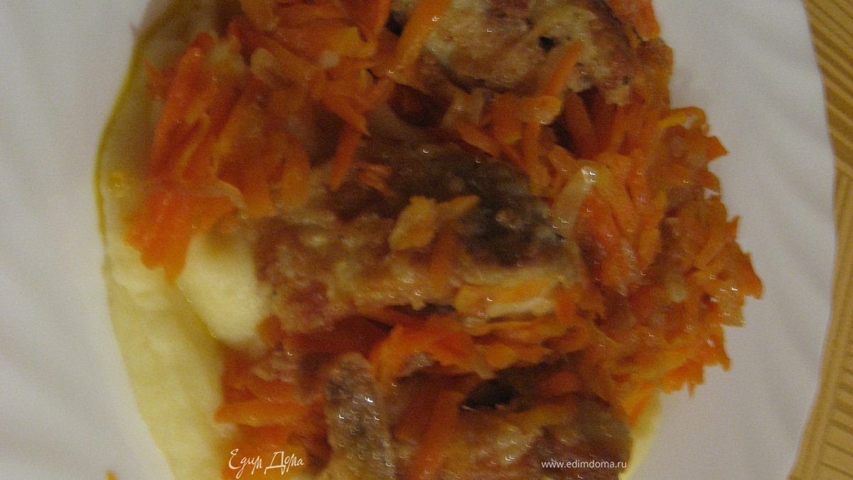 Нарезаем лук на полукольца или на четверти, морковь натираем на крупной терке. В другую сковороду с маслом выкладываем лук, жарим его до золотистого цвета, добавляем морковь, накрываем крышкой, тушим примерно 10 мин. Готовую заправку посолить, поперчить, сбрызнуть лимонным соком. Добавляем в заправку готовую рыбу и тушим еще 5 мин. на среднем огне.