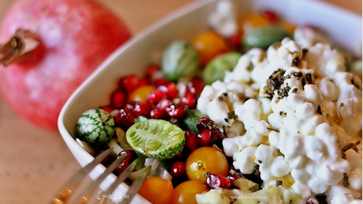 Салат из творога, граната и огурцов