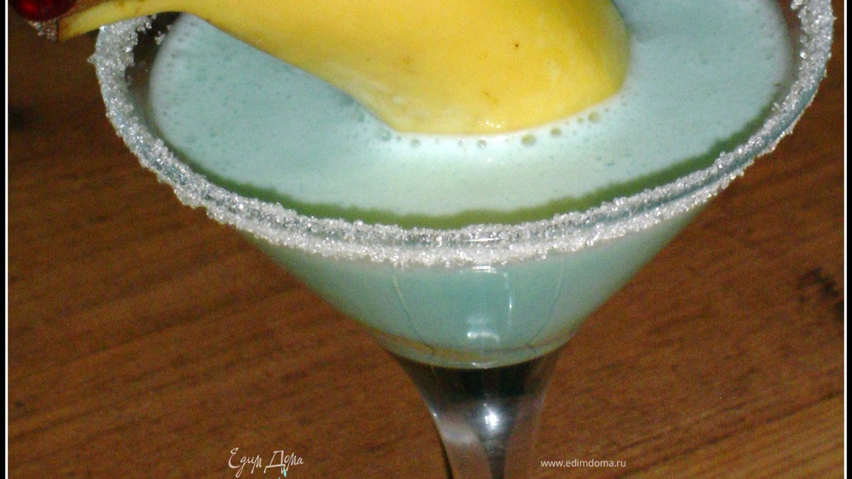 Чарующий голубизной коктейль с веселым "банановым дельфином"! Дети будут в восторге.