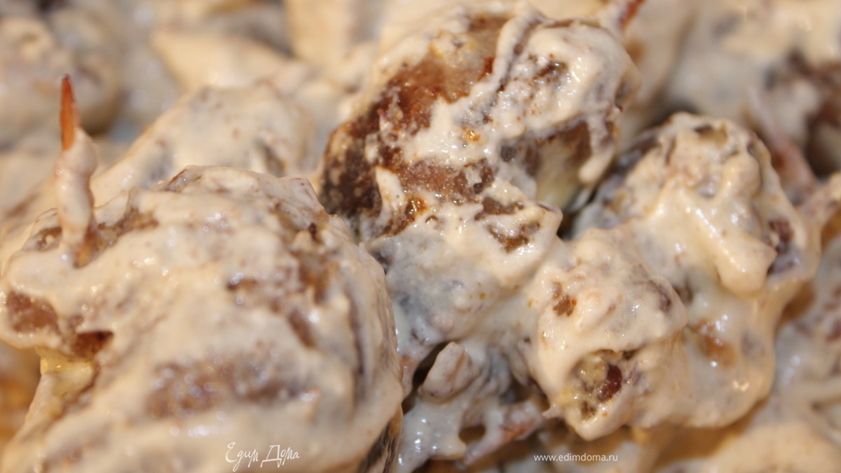 Мясные рулеты с черносливом и грецкими орехами в сметане