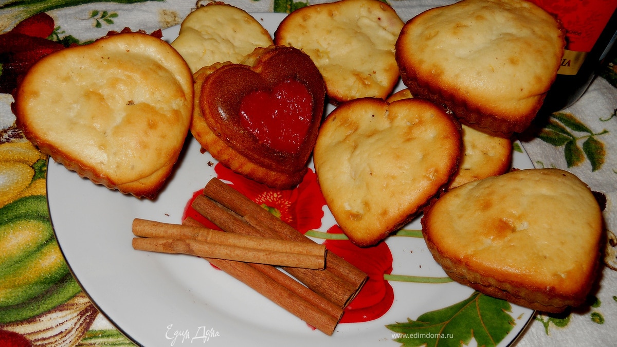 - Шаг 1Сливочное масло растереть с сахаром. Добавить яйца, сок лимона и молоко. Тщательно перемешать. Добавить муку, разрыхлитель, соль и апельсин ( предварительно мелко нарезать). Формочки смазать маслом. Заполнять следующим образом: 1 ст.л. теста, 1 ч.л. джема/повидла, 1 ст. л. теста. Выпекать 15 мин при температуре 220 С. Приятного аппетита!!