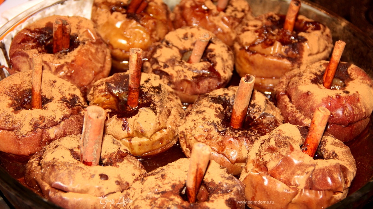 - Шаг 1Рецептик подсмотрен в ЖЖ белоника и немного от меня. Яблоки разрезать поперек на три части. Удалить серединку с семечками и хвостиком из двух верхних частей (быстрее получится специальным ножиком). Слои посыпать сахаром и корицей. Опять придать форму яблока. И запечь при 180 градусах - до готовности. Когда достанете из духовки опять посыпать сахаром и корицей и положить в каждое яблоко по кусочку масла. Я еще засунула в каждое яблоко по коричной палочке! Оч. нарядно смотрелось! Элементарно просто и вкусно! И запах праздника на весь дом! Перед подачей можно подогреть, а можно и холодными!