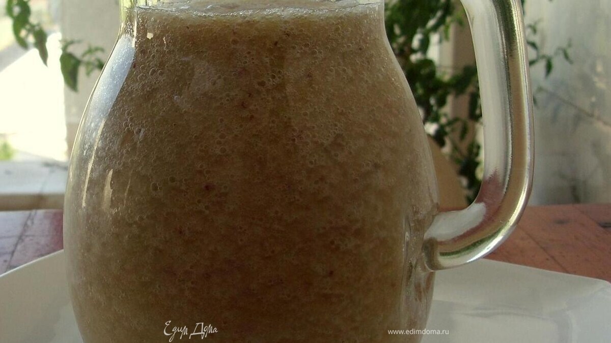 Перемолоть в блендере фрукты, добавить все остальные компоненты и взбить до однородного состояния.Подавать охлажденным с кубиками льда.