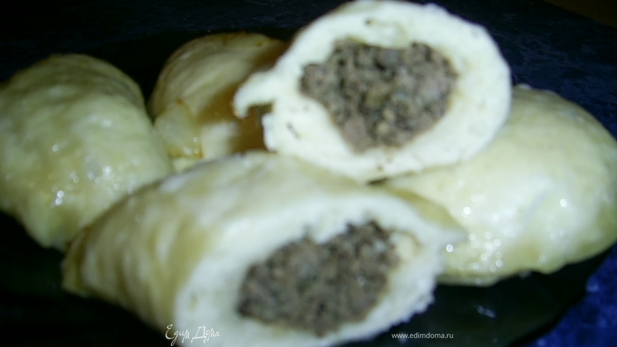 - Шаг 1Смешать кефир,яйцо,соль,сахар,подс. масло,муку.Замесить тесто,оно не должно прилипать к рукам.Затем на стол насыпать немного муки и соду,перемешать.Берем наше тесто и втираем муку с содой,как обычно замешиваем тесто.Дальше тесто ставим в холодильник на 30 мин.Начинка любая,у меня печенка.Варим на пару ровно 5 мин.