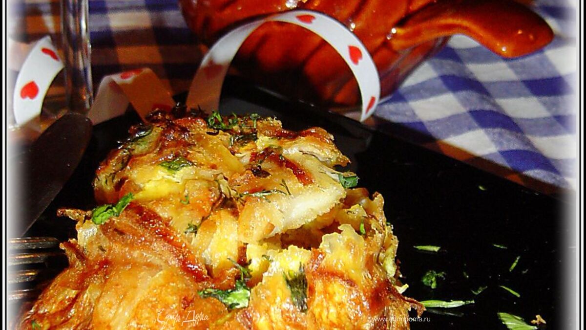 Лук нарезаем полукольцами, обваливаем в муке и обжариваем до золотистого цвета.