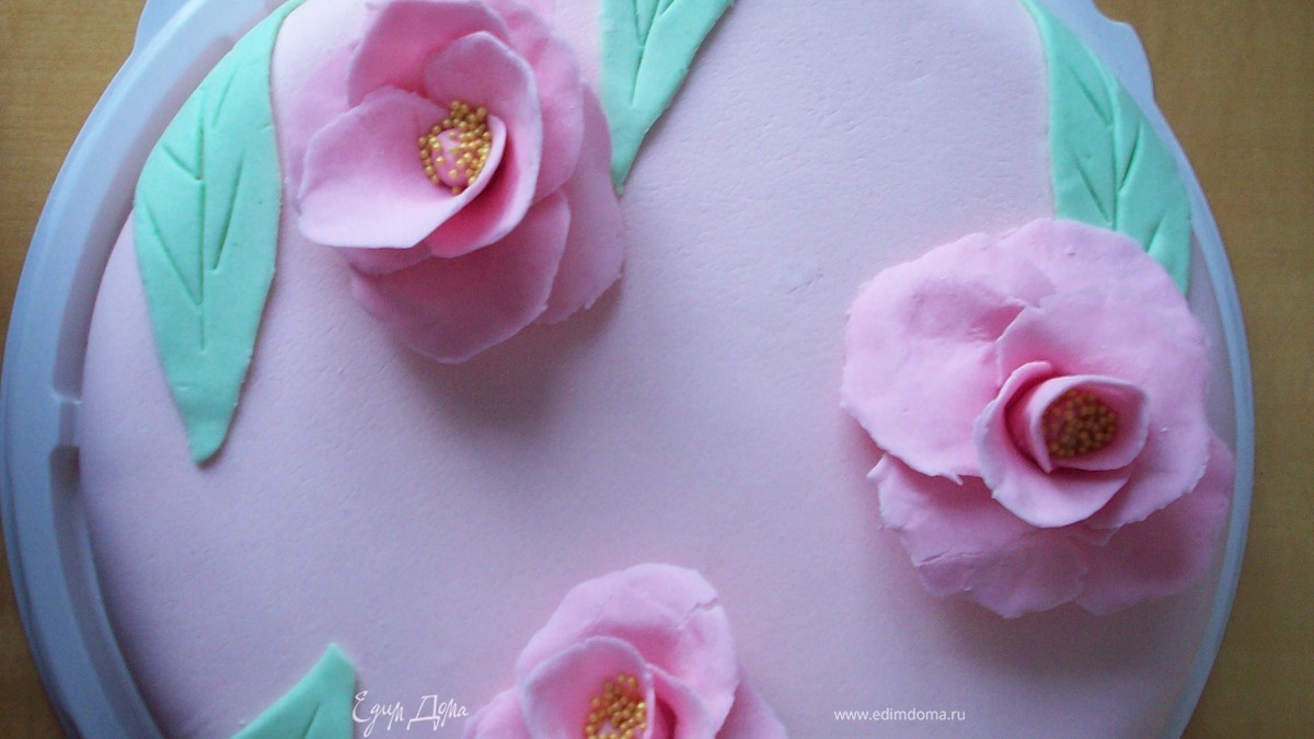 Опыт извлеченный из приготовления этого торта - поверхность торта необходимо покрывать масляным кремом, охлаждать в холодильнике и только после этого украшать мастикой!