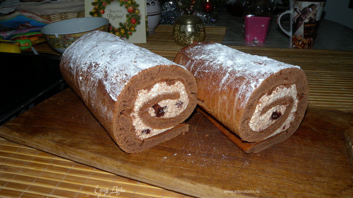 Вытаскиваем готовый корж, и сразу же сматываем вместе с бумагой. Даем остыть. (сейчас можно на балкон, зима на дворе). - Шаг 8