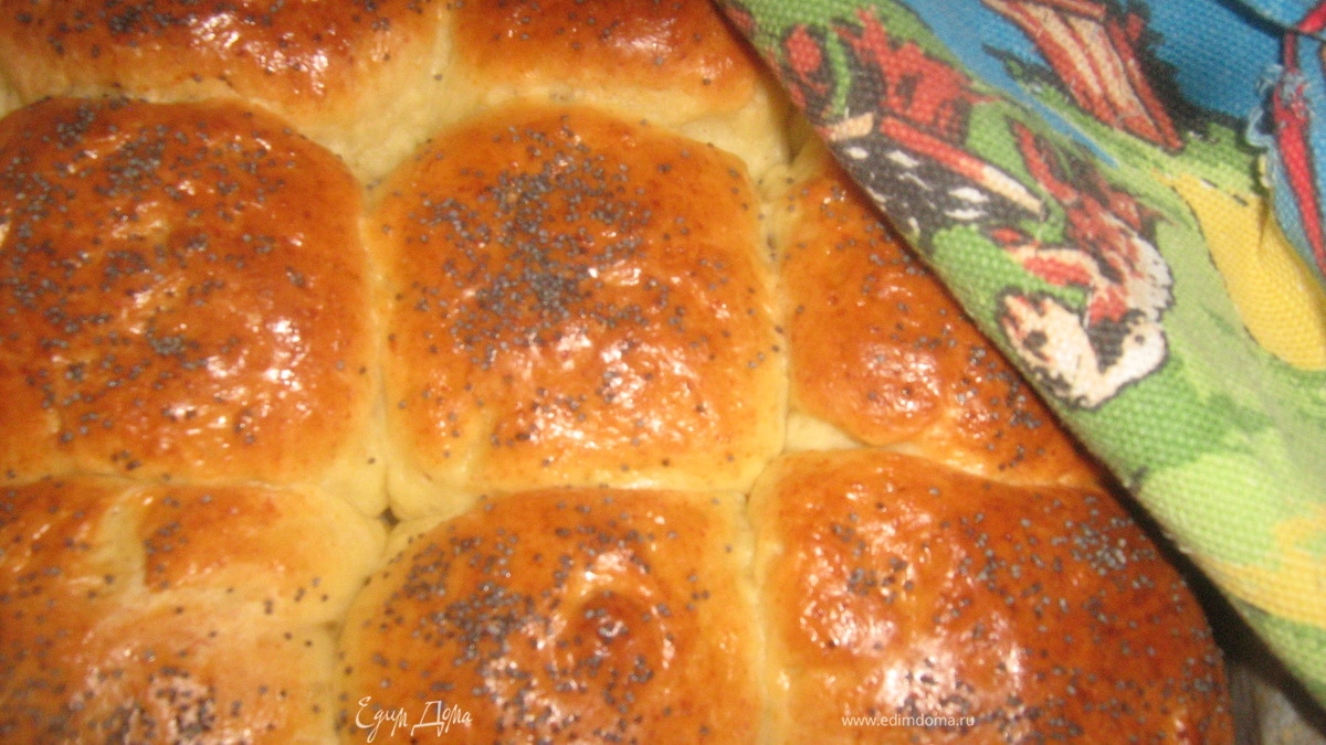 Форму выстилаем пергаментом и смазываем маслом. Формируем шарики и выкладываем на форму. Накрываем полотенцем и даем постоять не меньше 15-20 минут, они увеличатся почти в 2 раза. Смазываем желтком, посыпаем маком или кунжутом. В разогретую духовку на 20-25 минут.