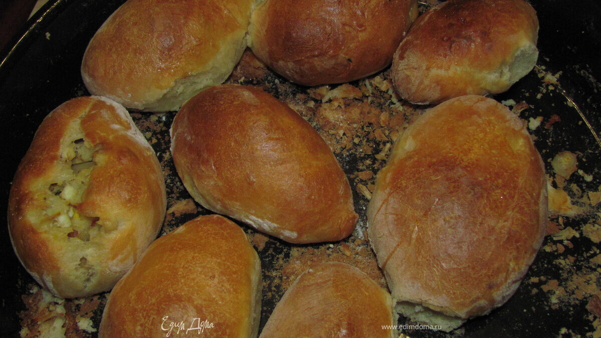 Приготовим продукты - это значит, они должны быть одной температуры (комнатной! или "кухонной"), заранее их вынуть из холодильника, жидкость можно слегка подогреть. Муку просеять. Дрожжи перетереть руками с мукой до однородной крошки (дрожжи всегда должны быть качественными и свежими). Вливаем теплое молоко и перемешиваем. Затем желтки с раст. маслом, растопленное сливочное масло, соль и сахар. Всё вымешать. Я сначала мешаю миксером, чтобы тесто было однородным, а потом - руками.Тесто помещаю в кастрюлю с высокими стенками, сверху два кухонных полотенца. И даем тесту время - сколько точно очень сложно определить. Примерно 3 часа, но если оно стоит возле включенной духовки, то хватает 1.5 часа. Перед тем как лепить пирожки тесто нужно обмять. С формовкой изделий тоже никаких проблем: на стол, посыпанный мукой, кладём тесто, отделяем кусочки и руками расплёскиваем в лепёшки. Кладём начинку и залепляем. Начинка: рис отварить в соленной воде. Яйца сварить. Яйца порезать на кубики. Зелень порубить. Все вместе соединить и хорошо перемешать. Пирожки кладу на посыпанный мукой противень.Смазываю взбитым яйцом. и в духовку на 180 гр.