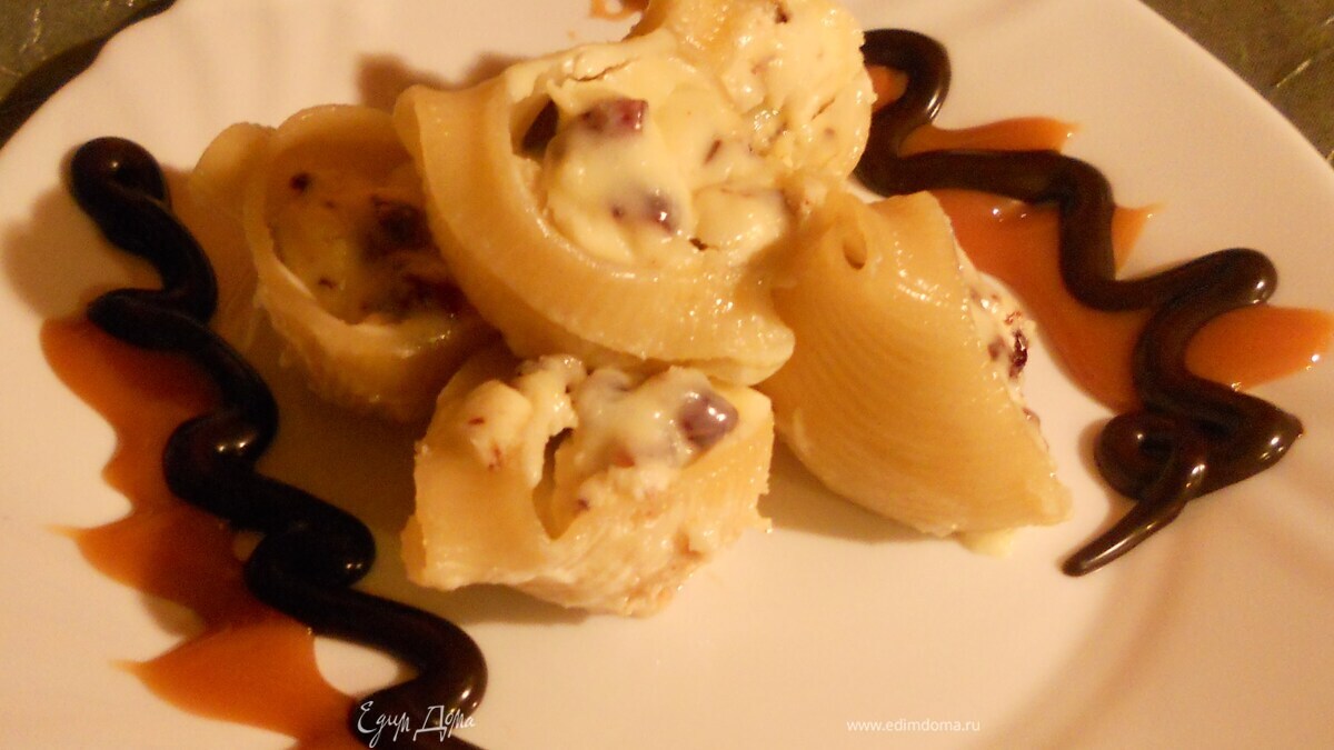 Десертная паста «ракушки» с рикоттой, вяленой клюквой и двумя видами шоколада