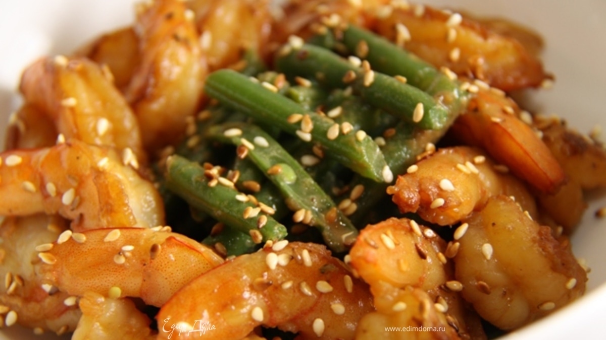 Зелёная фасоль с тахини и креветками