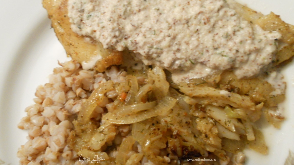 Фундук,чеснок и лук пропустить через мясорубку. Добавить остальные ингридиенты. Воду начинать вливать понемного. Когда смесь хорошо схватится с водой, можно уже долить всю воду и хорошо перемешать. Я отдельно потушила тилапию со специями и полила сациви.