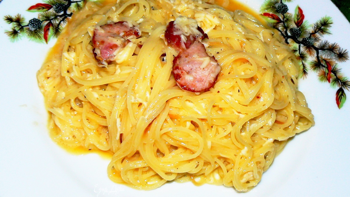 Смешать желтки с сыром, солью и перцем. Добавить обжаренный бекон. Пасту отварить в подсоленной воде затем добавить в смесь желтков,сыра и бекона. Все тщательно перемешать. Перед подачей можно сверху посыпать оставшимся сыром. Приятного аппетита!!!