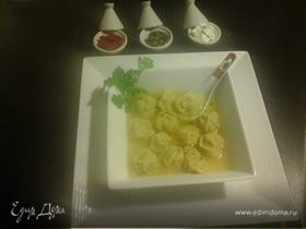 Иногда мои домашние просят сварить им обычные покупные пельмени. Меня, лишенной любимого удовольствия готовить, это конечно очень печалит. И все во мне восстает против приготовления пельменей по инструкции на упаковке. Недавно в книге И.Лазерсона прочитала вот такую вот идею разнообразить готовые пельмени - оказалось очень удачно, с восточной ноткой. Рецепт выставляю естественно не для оценки, а просто чтобы поделиться.