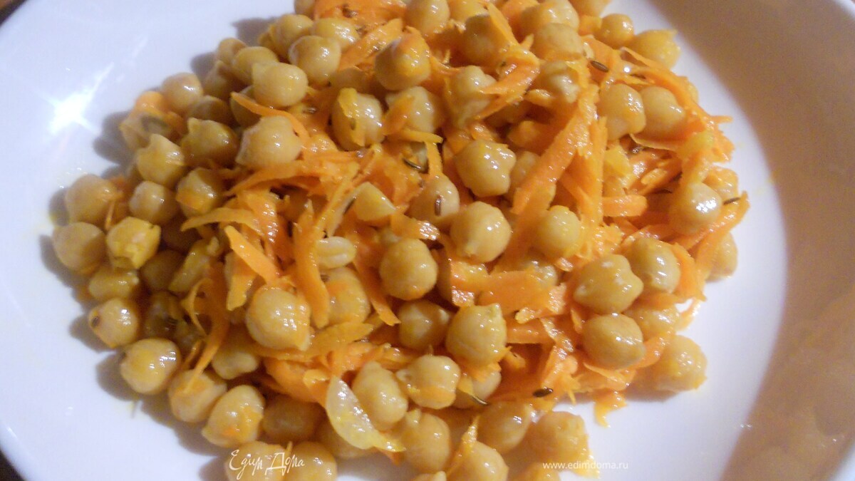 - Шаг 1Нут предварительно замочить в большом количестве воды, на 8-10 часов, затем отварить до готовности, воду слить. На сковороде разогреть оливковое масло, обжарить нут 2-3 минуты. Добавить натертую морковь, соль, тмин, зиру и перец (можно растереть) и готовить буквально минуту-две (в принципе можно добавить и сырую морковь, тогда будет интересная разница в текстуре). По желанию положить кусочек сливочного масла. Подавать теплым! Хорош сам по себе, но можно добавить натуральный йогурт/сметану.