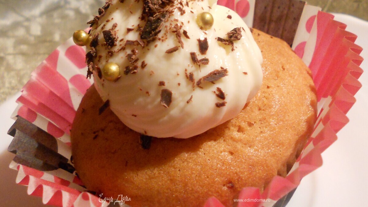 - ПодготовкаМуку смешать с разрыхлителем. Масло растопить (размягчить), соединить с яйцом, сахаром, солью, растереть. Соединить сухие и жидкие ингредиенты, еще раз перемешать. Духовку предварительно разогреть до 180-200 гр. Разложить тесто по формам, на 2/3, выпекать, в зависимости от размера форм и мощности плиты, 20-30 минут, остудить. Взбить сливочный сыр с сахарной пудрой (количество по вкусу). Убрать крем на некоторое время в холодильник - чтобы немного затвердел. С помощью кондитерского шприца украсить кексы кремом, присыпать тертым шоколадом или чем-либо еще на Ваш вкус.