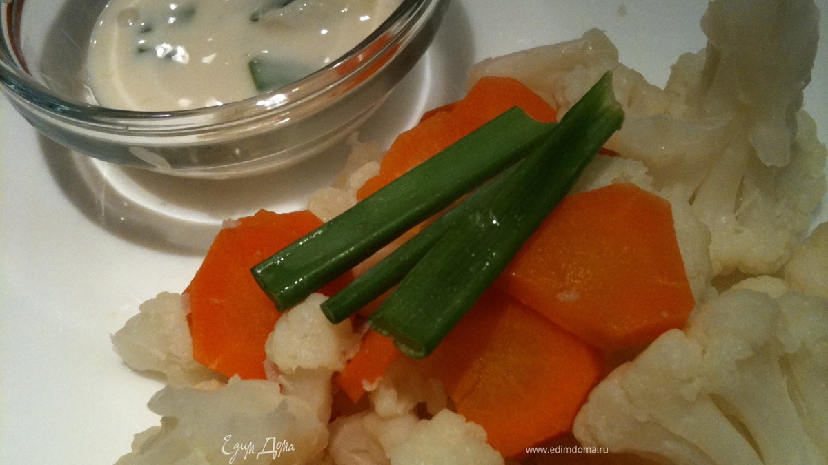 капусту и морковь порезать, приготовить в пароварке (15 минут). Соус: в йогурт добавляем соевый соус, чеснок, зелень, лук. Вот так все легко и просто!:)) Соус вкусненький!:)) Подходит тем кто на диете, если йогурт не жирный - у меня 2%. Подавать теплым.