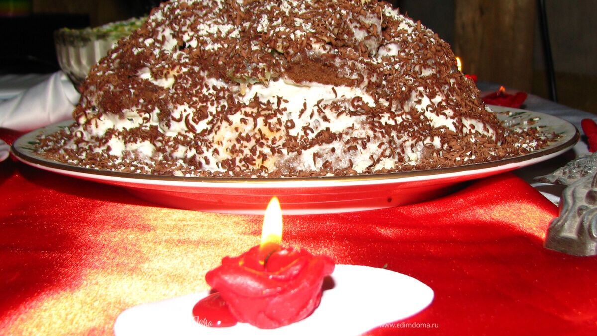 - Шаг 1Корж: Выпекаем обычный бисквит. Яйца взбить с сахаром (добавлять постепенно) в пену. Так же добавляем муку. Затем добавить соду, ванилин, какао - порошок, все постоянно перемешивая миксером. Ставим в разогретую духовку и выпекаем минут 30 (до румянца). Во время выпечки не открывать духовку иначе бисквит не подимется. Теплый бисквит разломать на кусочки, размером примерно 2x2 см. Дать полностью остыть.