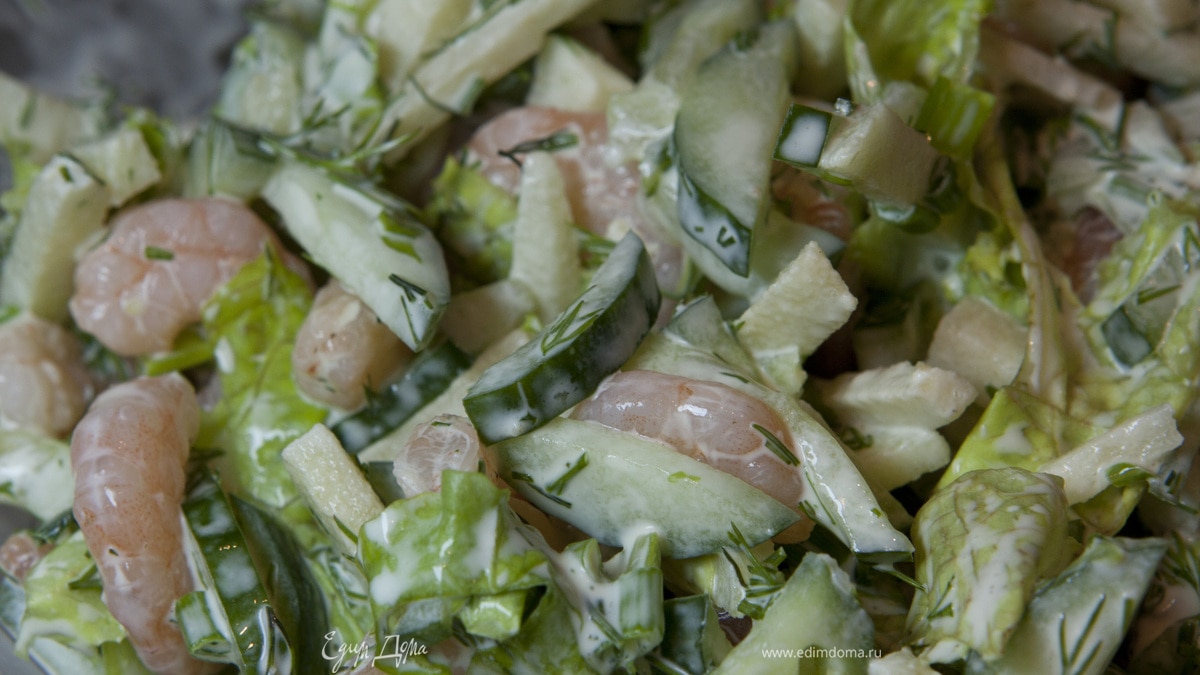 Салатик с креветками и яблочком