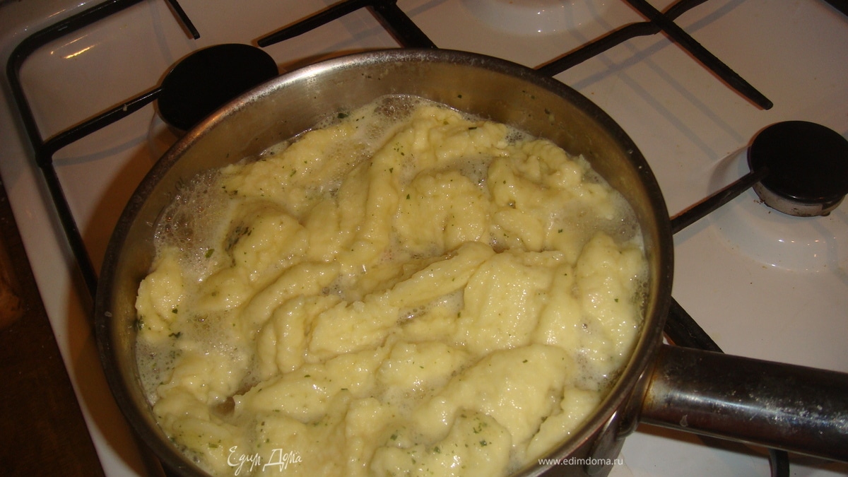 - Шаг 3чайной ложкой маленькими порциями отправляем получившуюся массу в кипящий бульон, варим десять минут, готово