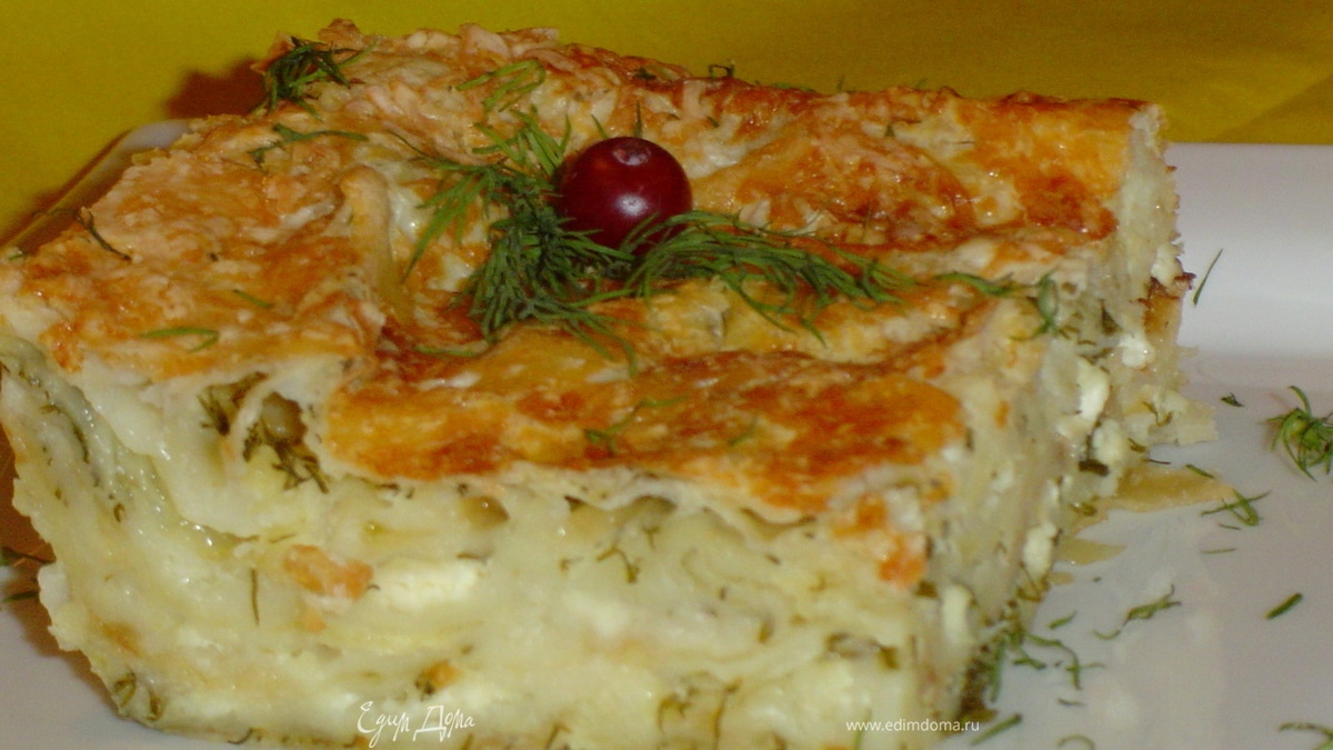 Таким образом чередуйте слои. Последний слой должен быть с сыром. Отправьте в духовку и выпекайте при 180°C до золотистого цвета. - Шаг 7