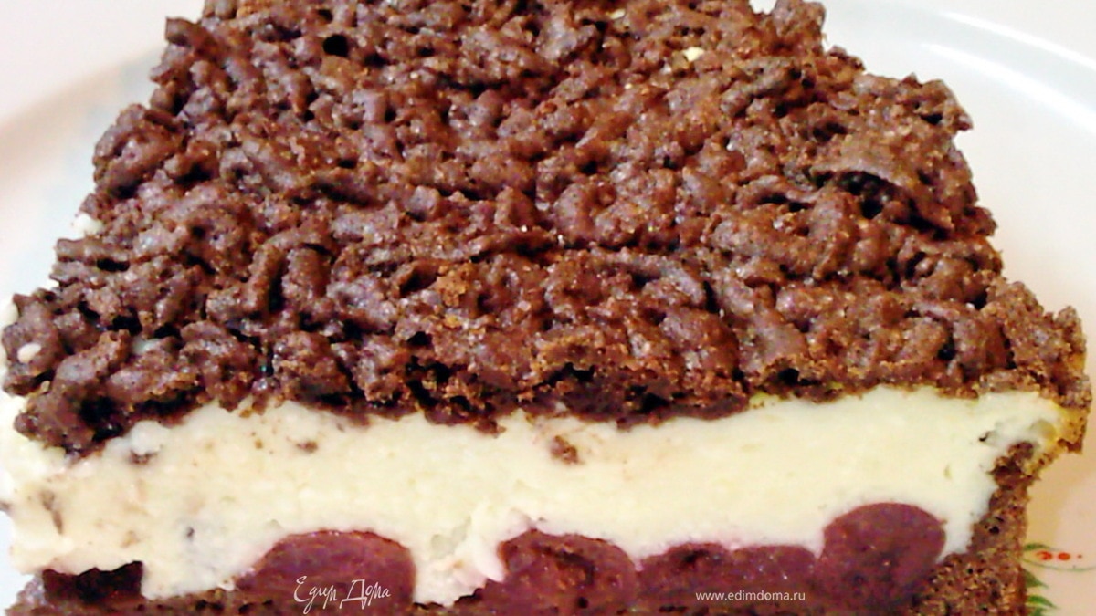 - Шаг 1Готовим тесто №1 :Маргарин потереть на терке,яйцо взбить с сахаром,добавить муку с рыхлителем и какао.Замесить.Тесто получается мягкое,не тугое. 1\3 теста отрезать и положить в холодильник. Остальное тесто кладем в форму и формируем бортики.Ставим в духовку на 10-15 минут.Затем тесто нужно охладить,но из формы не вынимать. Готовим тесто №2.Творог смешиваем со сметаной и взбиваем в блендере в пасту.Яйцо взбиваем с сахаром и смешиваем со сметаной и творогом.Добавляем Творопыш или крахмал. Вишню разморозить , сок отцедить .Смешать вишню с киселем. Берем форму с тестом. Натираем на тесто шоколад,высыпаем вишню,на вишню выливаем тесто№2 и сверху натираем тесто№1 с холодильника Я пекла 50 мин .при 160*. Желательно готовый пляцок оставить в духовке до остывания. Приятного аппетита