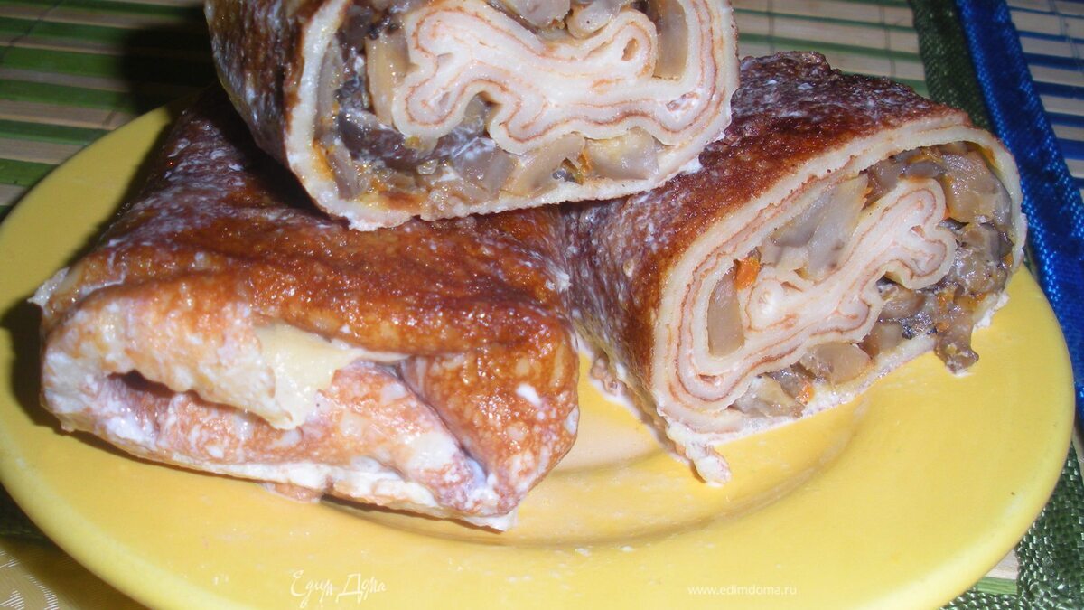 Блинчики с грибами запеченные в сливках