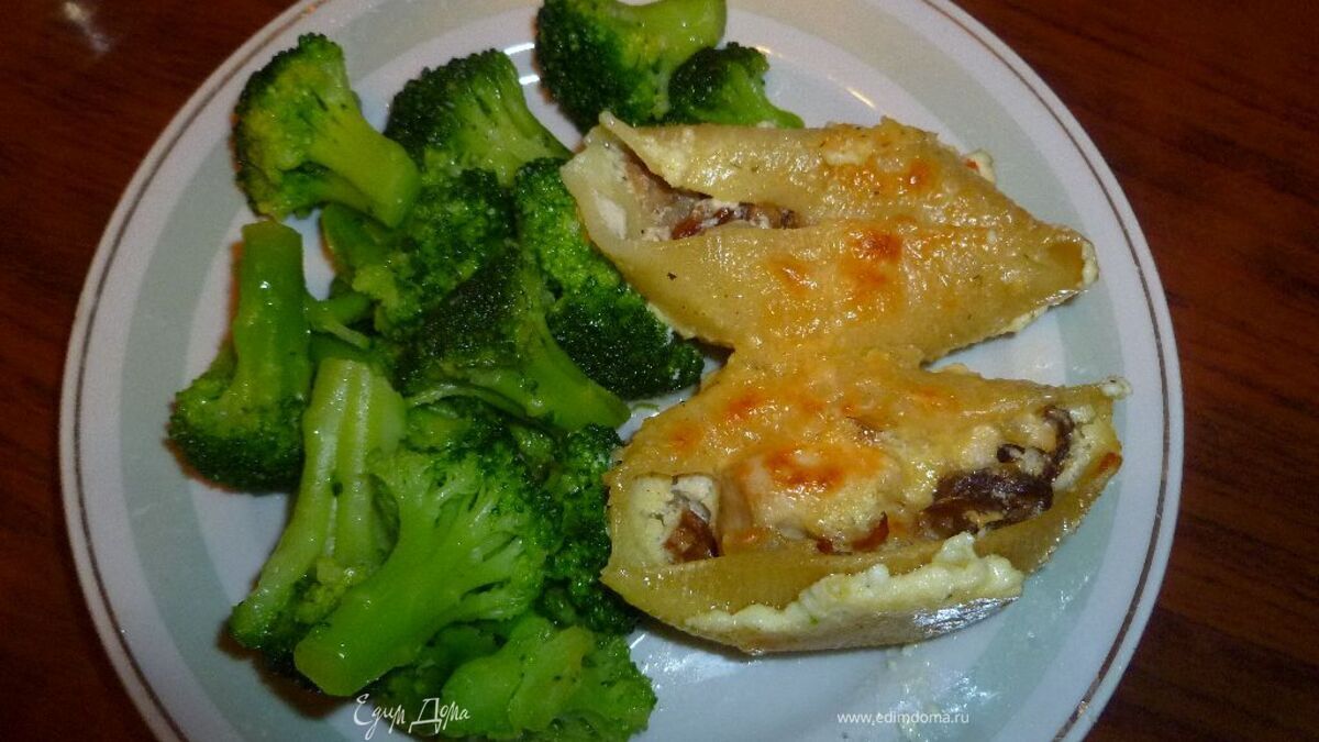 Большие макаронные ракушки фаршированные курицей-грибами .