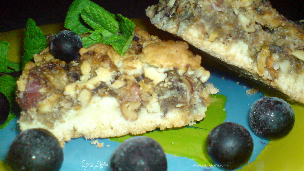 Для творожного теста:смешать все ингредиенты,кусок,размером "с кулак",отделить и убрать в морозилку,остальное сформировать в "ком" и убрать в холодильник. Для "фруктового слоя": высыпать сахар на сковороду,добавить морковь,помешивая,обжаривать,растворяя сахар.Добавить сухофрукты,вылить сливки и томить15-20мин. Прибавить лимон, мёд,можно сюда же добавить орехи. Если увеличить время томления,чтобы испарилась жидкость,а потом выложить на противень и запечь вдуховке(30-40мин)-получатся козинаки. Для овсяного слоя: растопить сливочное масло,добавить овсяные хлопья и обжарить их помешивая. На самом деле это вариант "Овсяных шариков"(кришнаитского рецепта):400гр.овсяных хлопьв обжарить с 200гр.слив.масла,смешать с варёной сгущёнкой,охладить,скатать шарики и обвалять в кокосовой стружке. Собираем печенье: Раскатываем творожное тесто,помещаем на противень(пергамент),посыпаем орехами. Сверху распределяем "фруктовый слой",на него-"овсяный".Достаём из морозилки творожную "запаску"-натираем на крупной тёрке сверху и посыпаем сахаром со специями. Выпекаем до 30мин при180гр. и 10-15мин. под грилем. Печенье получается нежное,с начинкой-"тянучкой" и хрустящей корочкой!