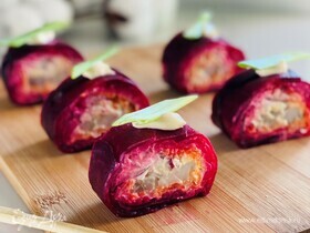 - ПодготовкаПерец, помидор, филе сельди режем кусочками, лук - полукольцами, перчим, солим (очень мало!), немного сахар, заправляем лимонным соком и подс. маслом. Этот сала необходимо выкладывать в продолговатое блюдо не сильно высокой горкой, почему-то так вкуснее... :)))