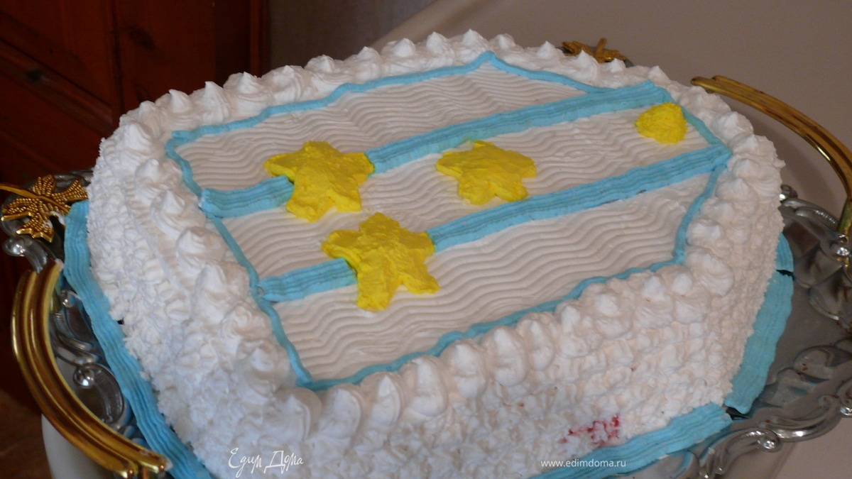 В оригинале торт украшается натертым шоколадом и свежей вишней, но я на 23 февраля постаралась и испекла мужу торт в виде погона полковника, как у него. На украине полковничьи погоны прокурора выглядят именно так. Рецепт не сложный, а торт получается просто супер!!!