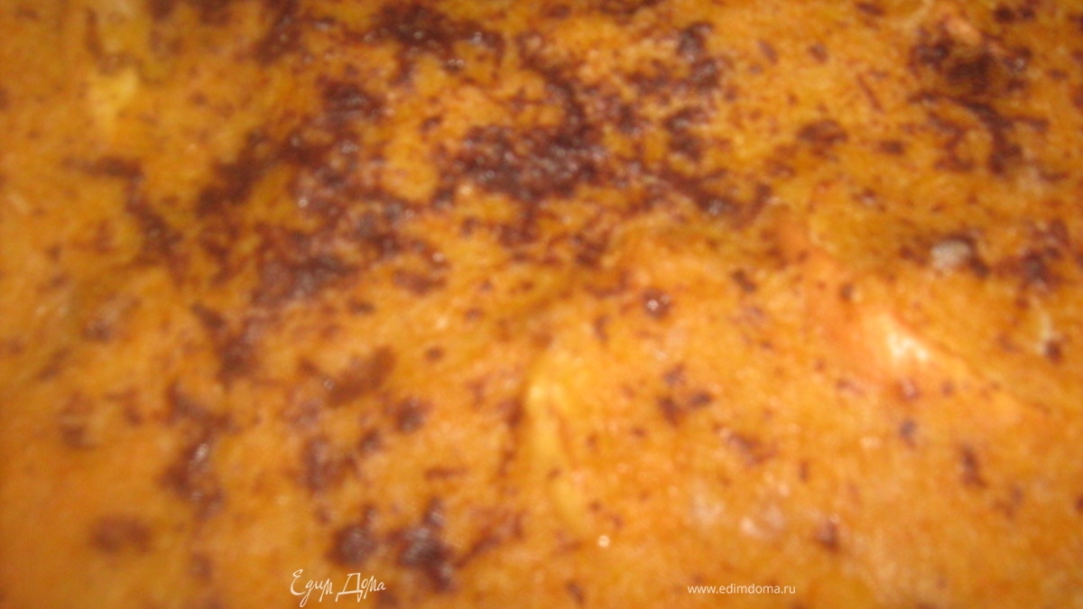 - Шаг 3Форму выложить пергаментом, смазать обильно маслом и посыпать сухарями, выложить яблоки. Вылить тыквенную смесь. Посыпать тертым шоколадом и в духовку. На средний огонь. Когда бока пудинга начнут отходить от стенок, а сам пудинг покроется аппетитной корочкой - все готово (у меня выпекание заняло 30 минут).