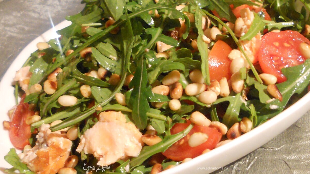 Салат для симы с руколой, семгой и грейпфрутовой заправкой