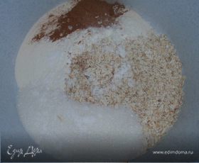 Смешиваем муку, овсяные хлопья, сахар, соду, корицу и ванилин.