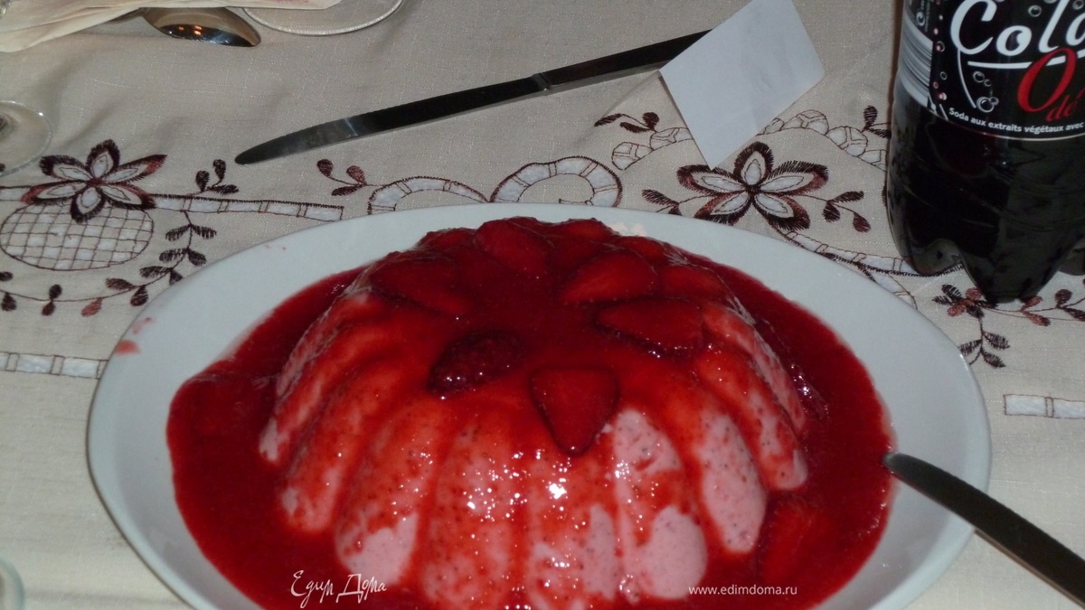 - Шаг 1Замочить желатин в хол.воде.Сварить сироп из 200гр сахара и 150гр воды.Немного охладить и положить туда желатин. 500гр клубники измельчить в пюре, добавить сок лимона и охлажд.сироп. Взбить сметану немного и смешать с клубничным пюре.Вылить в форму и в холод на 12часов. Соус приготовить из оставшейся клубники и сахара, измельчив в пюре. Извлечь баваруа из формы.Подавать,полив соусом. Приятного аппетита! Думаю, что из малины будет тоже не плохо.