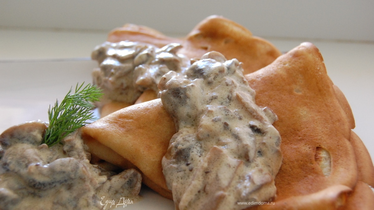 Сливочно-грибные блинчики под сливочно -грибным соусом!ай,да масленица!!!