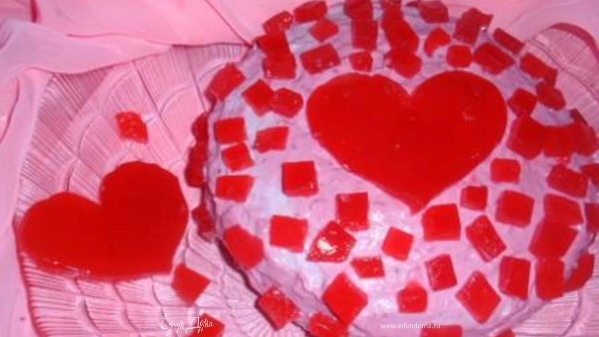 Форму с желе опускаем в кипяток на 1-2 секунды. Вынимаем желе из формы. И режем квадратиками, сердечками, кружочками...Украшаем торт. - Шаг 8