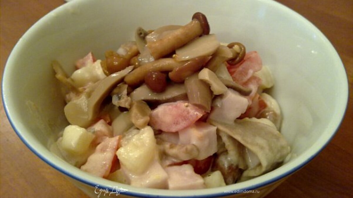 Салат с маринованными опятами и ветчиной