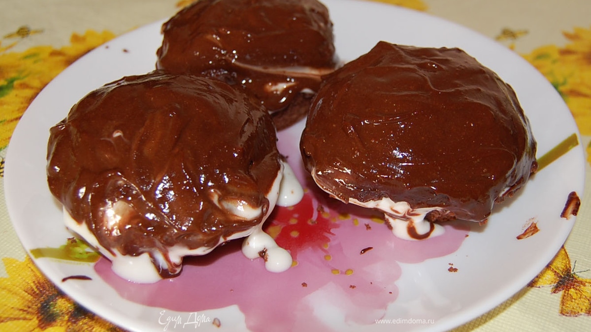 Сначала хотела испечь просто шоколадные кексики, а потом как-то случайно придумалось - промазать их кремом, полить глазурью... В итоге получились маленькие такие тортики...:)
