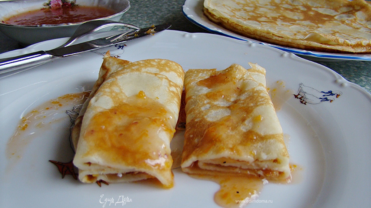 - Шаг 3На блинчик выложите сироп и заверните. Можете еще взбить сливки и украсить :)
