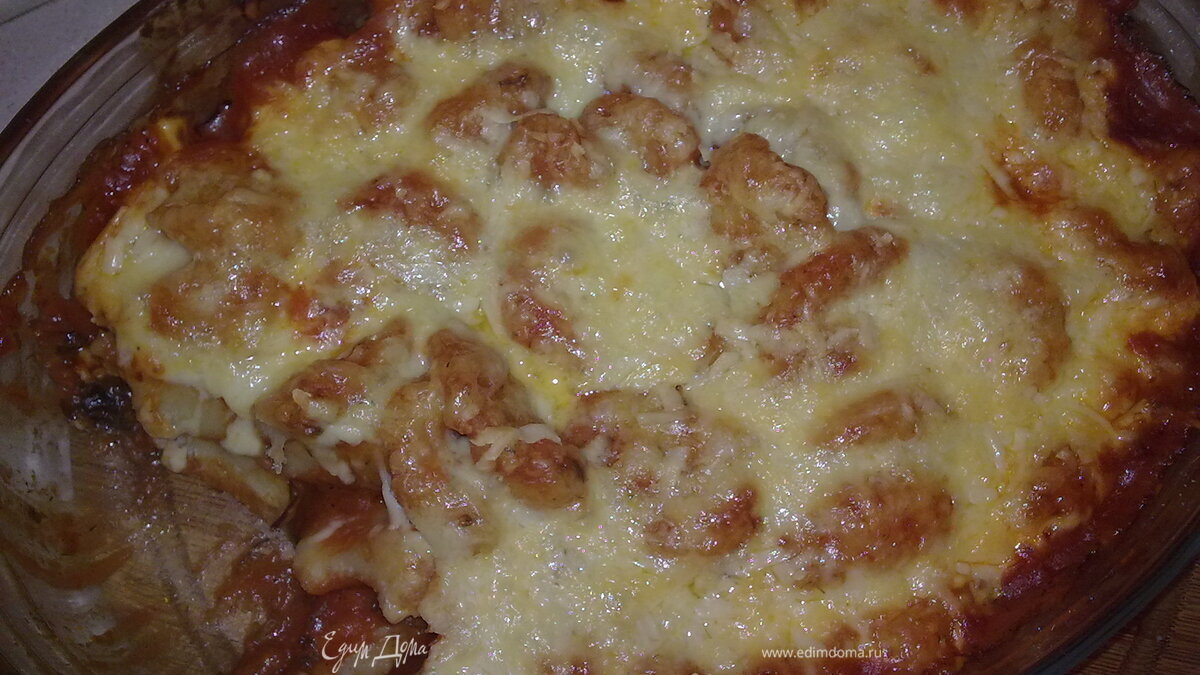 - Шаг 4В сотейник налить томатный соус,добавить соль,сахар,перец.базелик и оливковое масло по вкусу и тушить 1-2 минуты. Добавить отваренные ньокки и тушить ещё 1-2 минут. Выложить в блюдо для запекания,посыпать моцареллой и пармезаном.Запекать до золотистой корочки. Приятного аппетита!