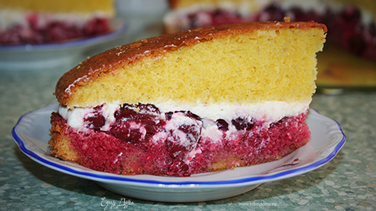 Бисквит со взбитыми сливками и вишней