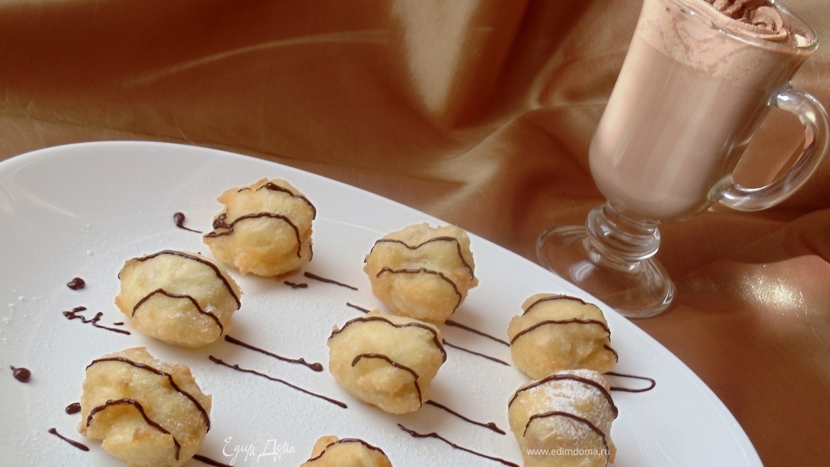 Французские пышки с шоколадно-апельсиновым напитком