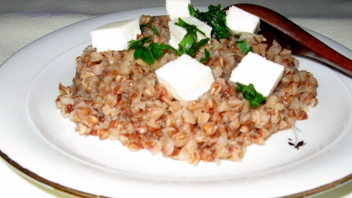 - Шаг 2Довести до кипения, накрыть крышкой, уменьшить огонь до минимального. Готовить 12–15 минут. Кашу подавать горячей, сверху выложить кусочки домашнего сыра, посыпать зеленью петрушки.