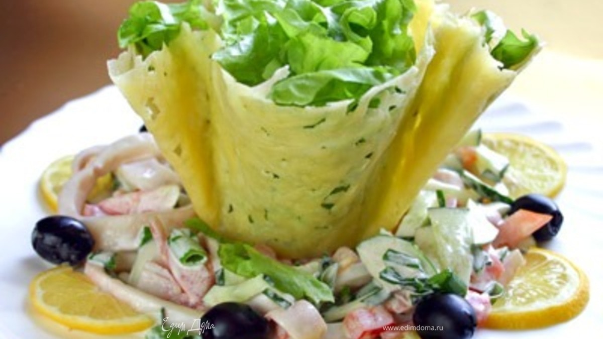 - Шаг 1на противень насыпать тёртый сыр небольшой лепёшкою и поставить в духовку до полного расплавления.Дать остыть и опрокинуть на стакан перевёрнутый верх дном.