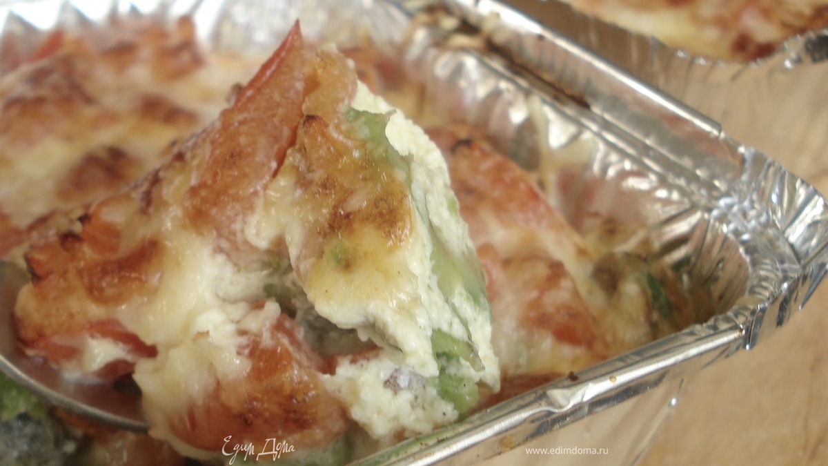 полить соусом, посыпать пармезаном и поставить под хорошо разогретый гриль до