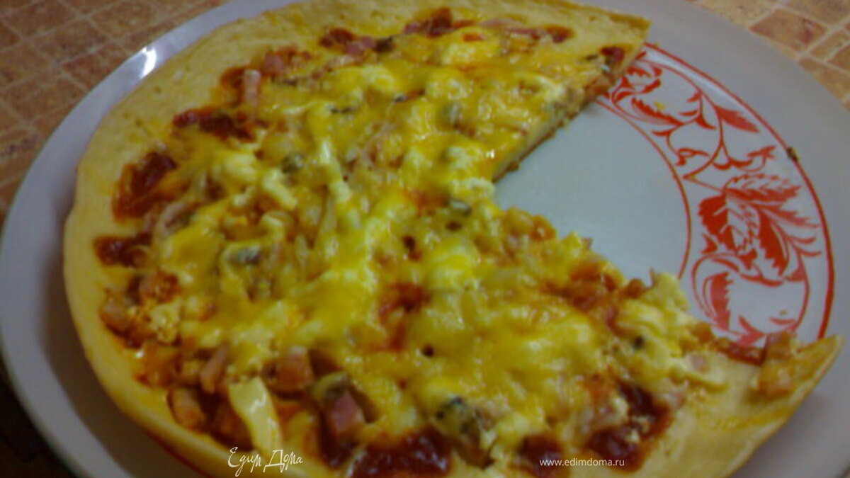 Этот рецепт,я нашла в журнале. Возможно он подойдет тем у кого вредная духовка так и норовит испортить очередной шедевр или же тем кто часто бывает в разъездах,командировках на сессиях и т.п. Не успела сделать фотографию целой пиццы.