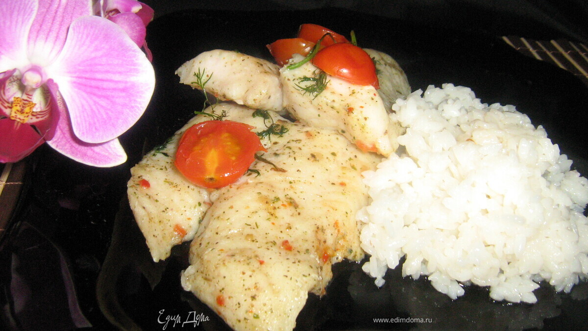 Филе пангасиуса(а я брала именно его)разморозить,разрезать на две части(если Вы взяли филе тилапии,то разрезать не нужно),сбрызнуть рыбу лимонным соком,добавить приправу,оливковое масло,соль,уложить рыбу в пакет для запекания,добавить разрезанные на половинки помидоры "черри",зелень,пакет закрепить и поставить в разогретую до 180С духовку на 15 минут.Готовую рыбу подавать с рисом или картофельным пюре.Ну очень вкусно и очень быстро!