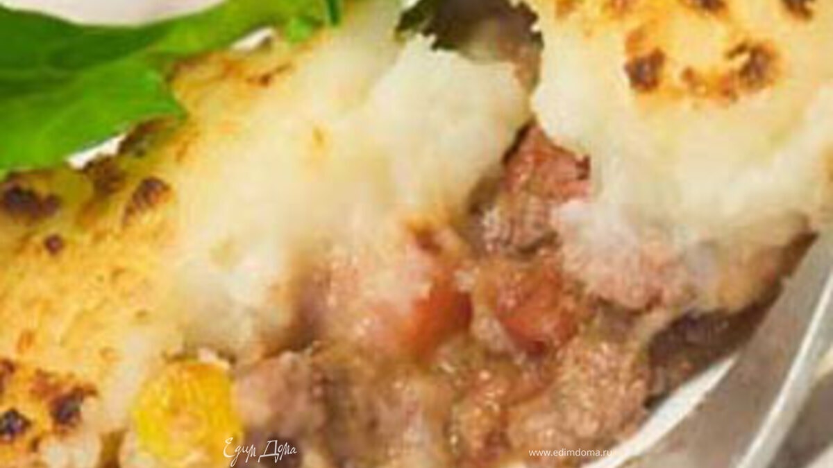 - Шаг 4Пюре распределить сверху на фарш. Посыпать твердым натертым сыром, 100-150 гр. И это все поставить в духовку (190-200 градусов) на 20 минут. Вынуть, дать постоять минут 10.