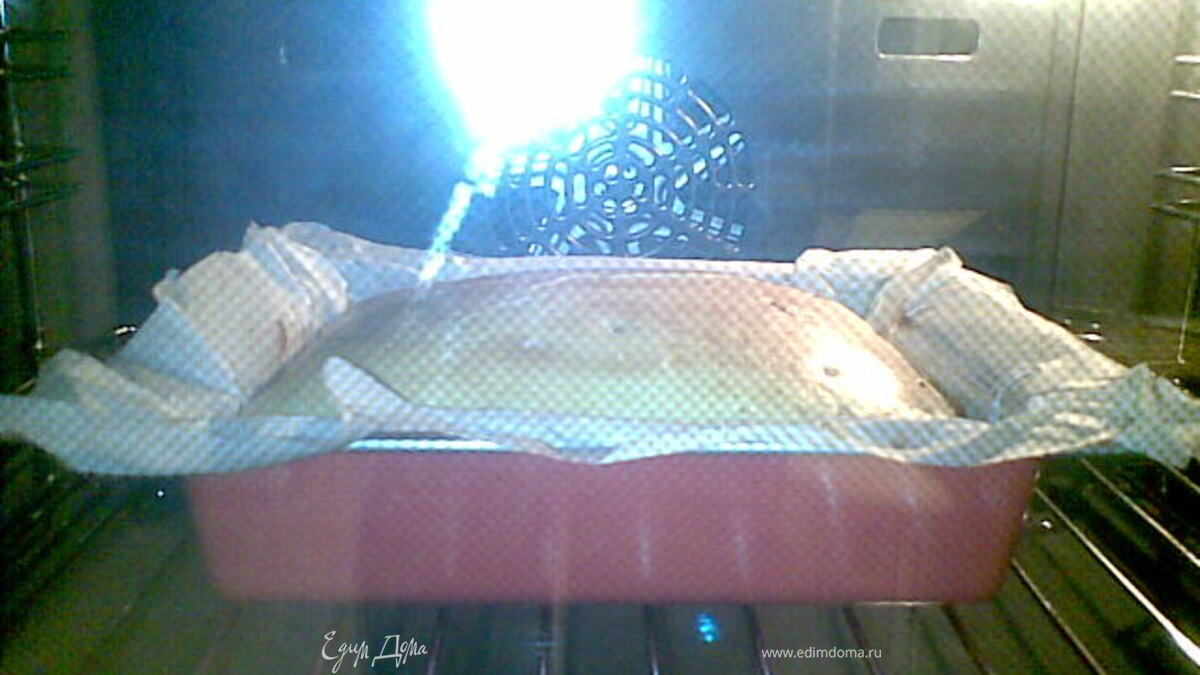 - Шаг 3Выпекать в духовке при 180 градусов минут 30-40, до ровной коричневой корочки. В процессе выпекания сильно поднимается, потом может немного осесть.